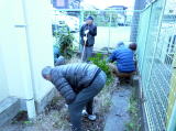 今回の清掃はトイレ工事のため会館入口と外回りの草取りを行いました