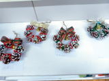 安全ピンにビーズを通して国旗や好きなデザインを作りました